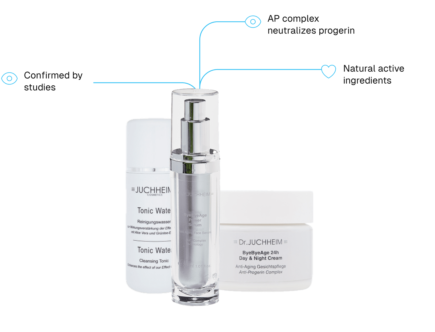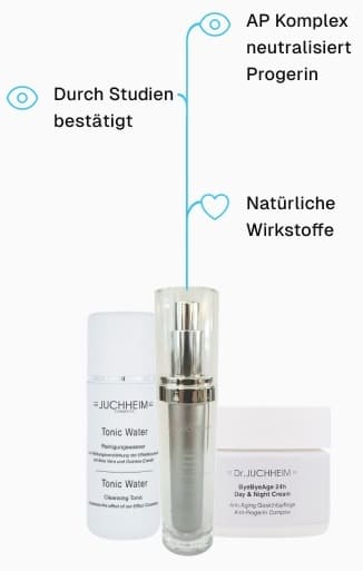 ByeByeAge, hello radiant, youthful skin! The latest studies show that a defective protein called progerin is largely responsible for the ageing process. It causes the skin to age more quickly, resulting in fine lines, wrinkles and sagging skin. With ByeByeAge and the patented AP Complex, we fight ageing at its source.