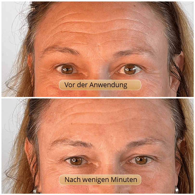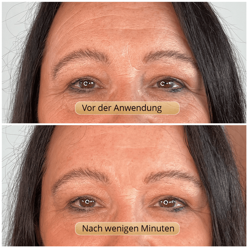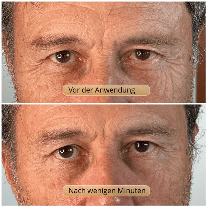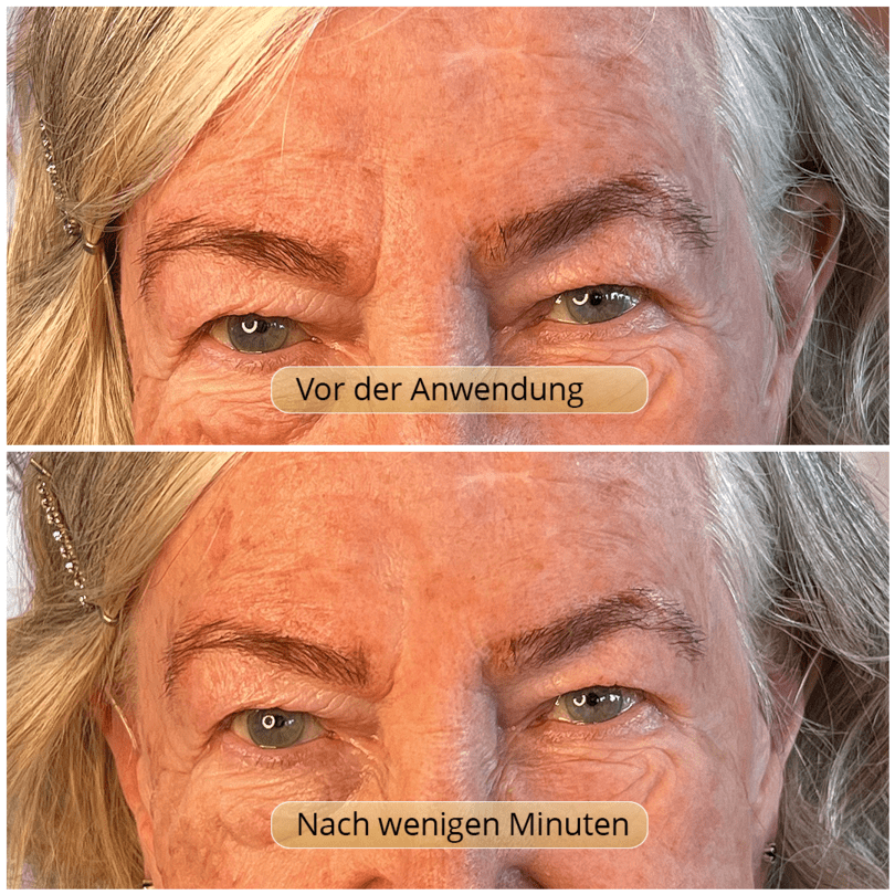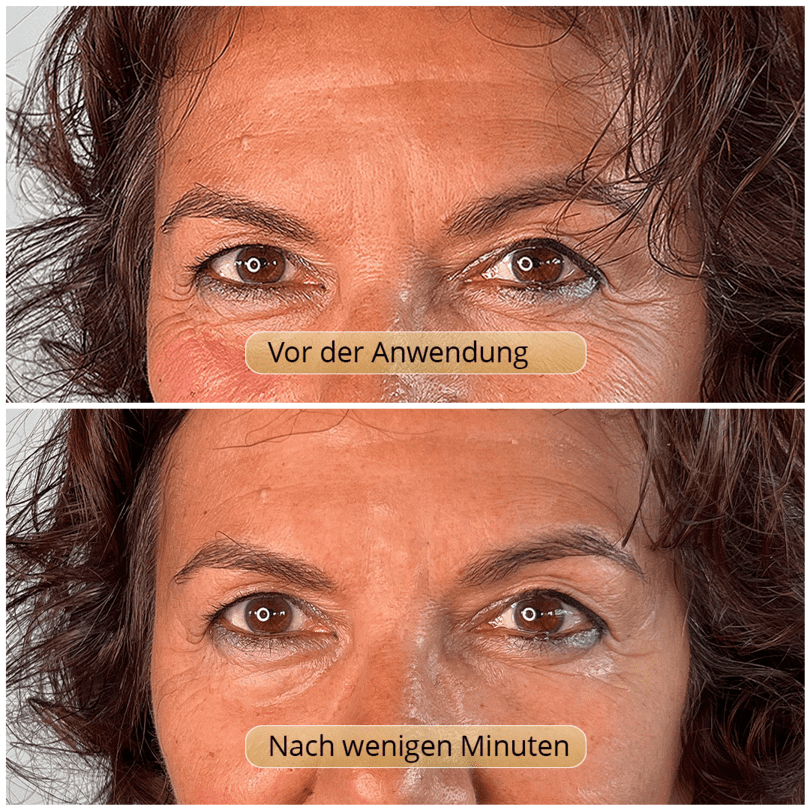 The immediate anti-wrinkle effect takes effect within a few minutes and increases daily with each application. The appearance of tired eyes and bags under the eyes can be improved immediately.